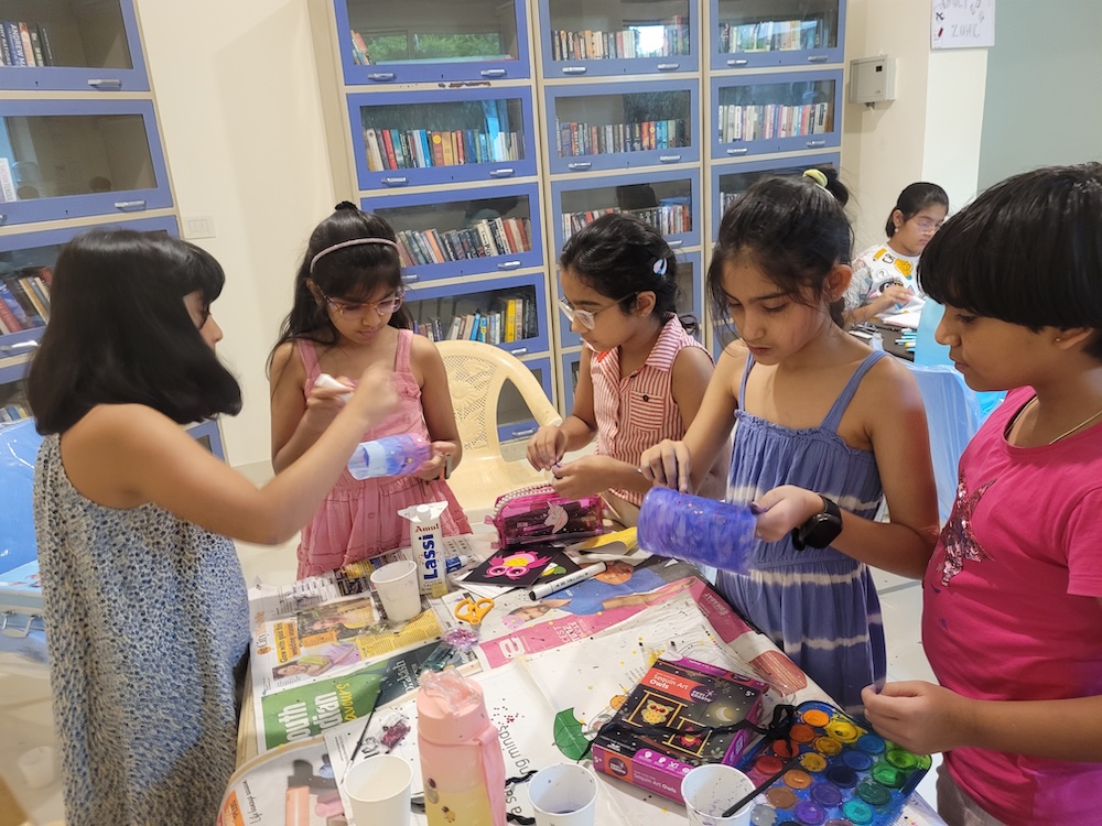 This summer, with the help of kids aged 7 to 13, I finally brought my dream to life! Over three weeks, we transformed a small, yet beautiful space in my condominium overlooking the greens into a library. The children played an active role in every step of the process—they helped sort, categorize, and organize books. They also used their creativity to design posters, labels, and signs for different zones in the library. It was amazing to see how they took ownership of the space, from designing the labels to cleaning up and working together as a team.