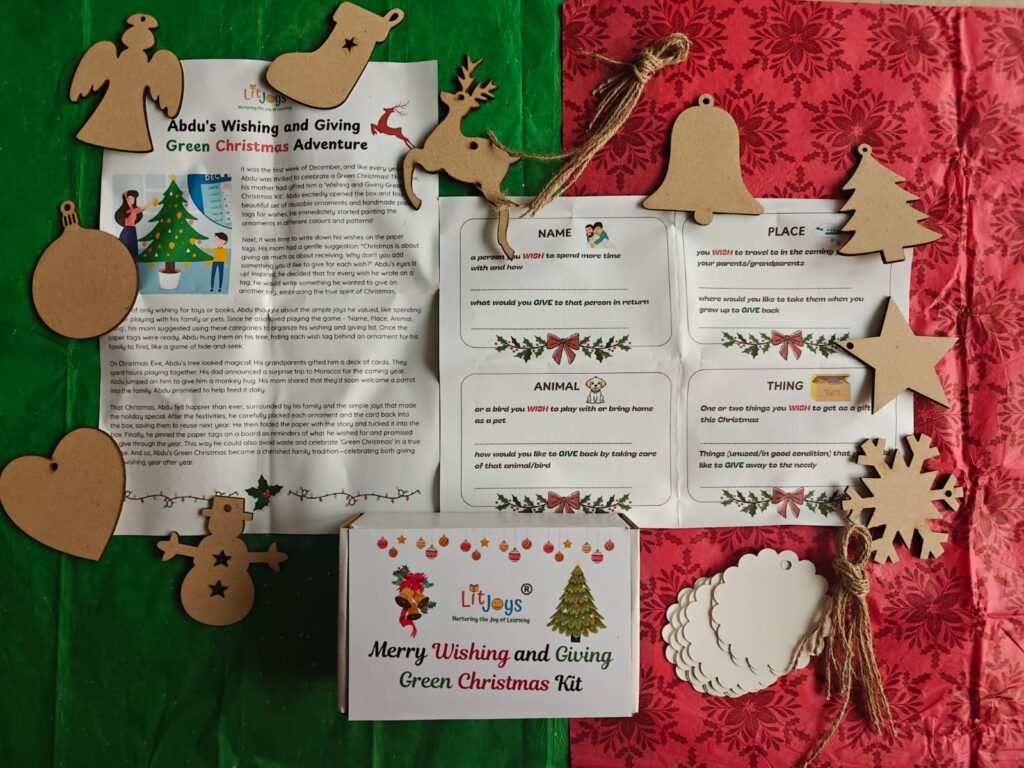 Since writing my book “City of Stars” in 2019, eco-conscious practices have become second nature to us. We celebrate festivals and birthdays with reusable decorations, avoiding balloons and other single-use plastics. We also carry our water bottles everywhere to practice sustainability in our daily lives. This commitment also extends to the products I design. I carefully selected the materials and designed the ‘Wishing and Giving Green Christmas Kit’ for a recent workshop to ensure no waste is generated, allowing children to truly experience the spirit of a ‘Green Christmas.’